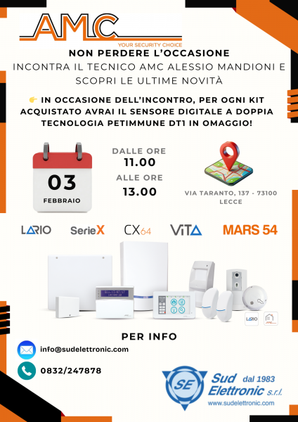 AMC Elettronica è lieta di incontrare Sud Elettronic il 3 Febbraio. Vi aspettiamo per presentarvi le ultime novità VITA, e prossimi prodotti in uscita